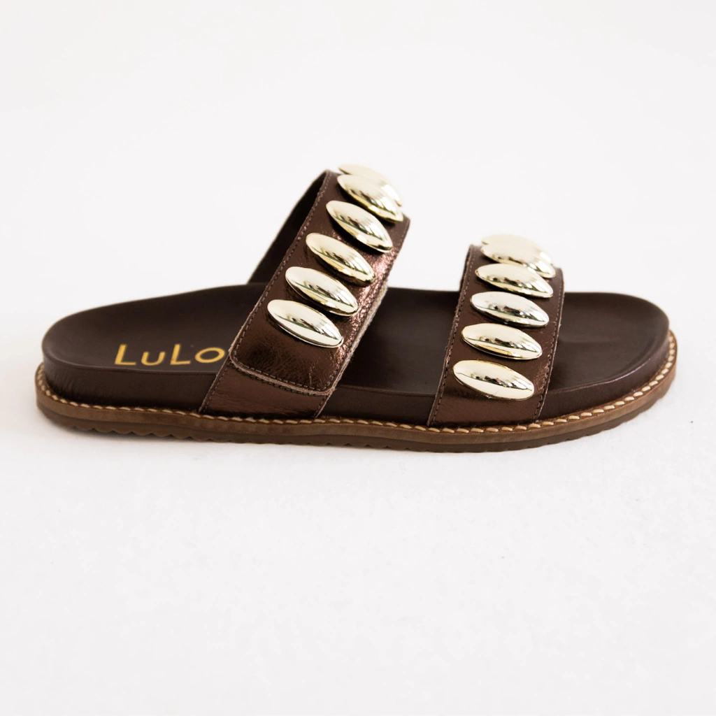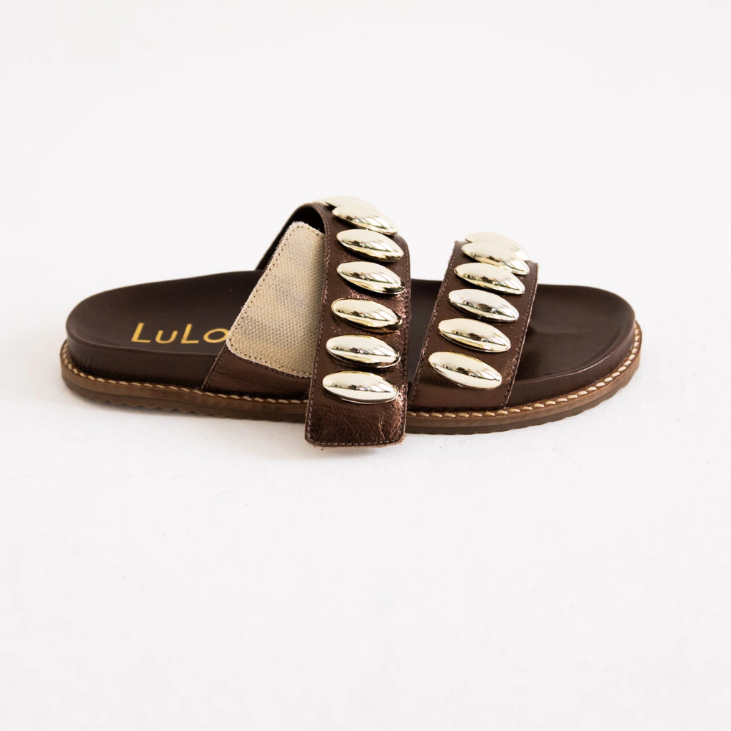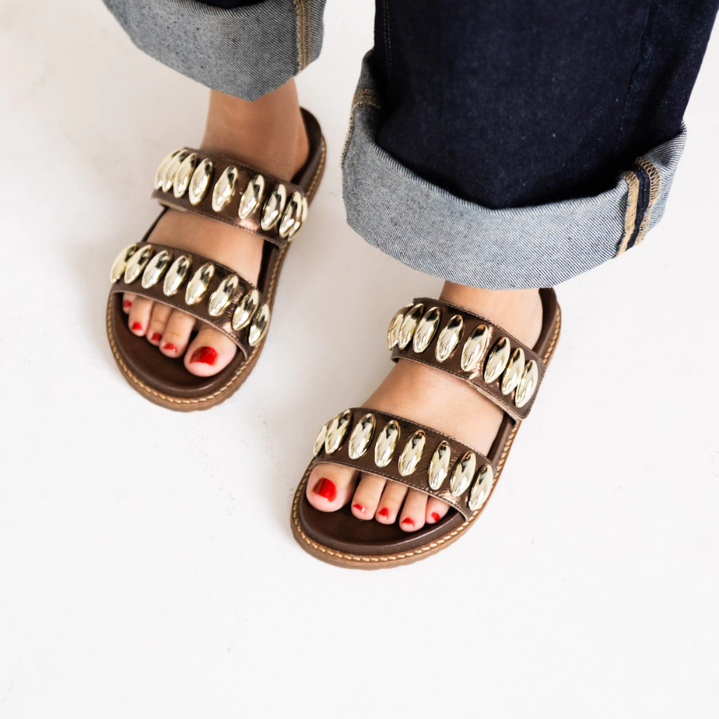 Apresentamos a Papete Nairobi, uma sandália que combina praticidade e estilo em uma peça única. Confeccionada em couro cor metalizado marrom, essa papete oferece o equilíbrio perfeito entre conforto e versatilidade, sendo ideal para o uso diário.