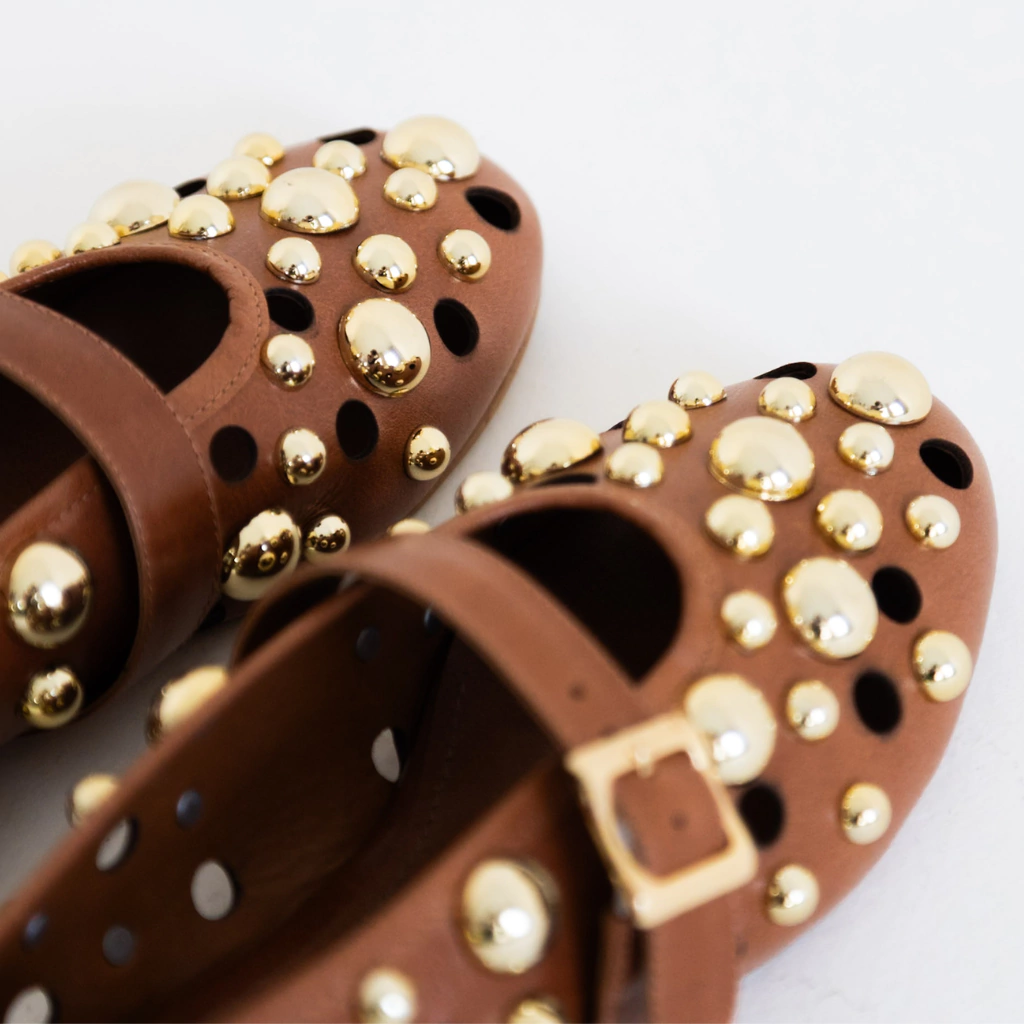 Brilho, personalidade e sofisticação em um único calçado. A Sapatilha Lume é a fusão perfeita entre o clássico e o contemporâneo, trazendo o icônico modelo Mary Jane com uma releitura moderna e impactante. Seus recortes vazados e esferas metálicas aplicadas adicionam um toque de ousadia, transformando qualquer look em uma expressão de estilo autêntico.