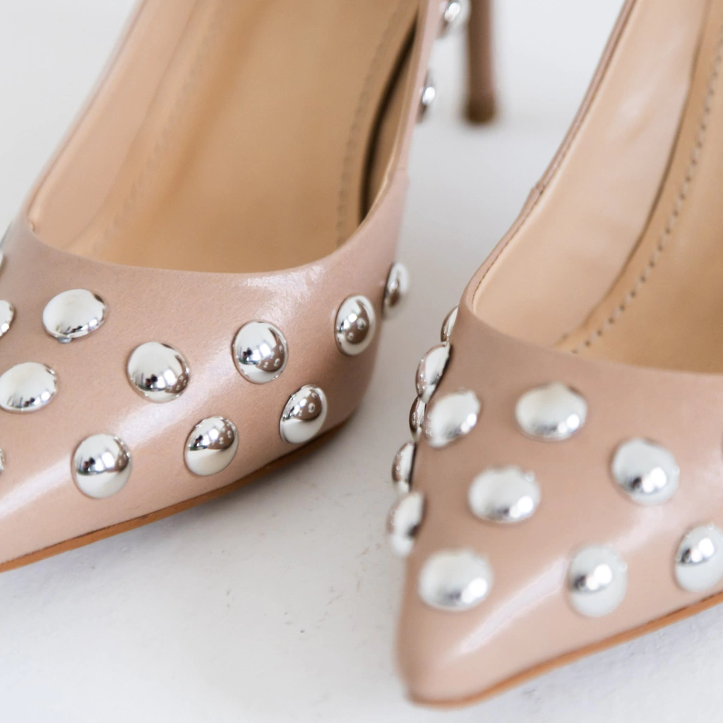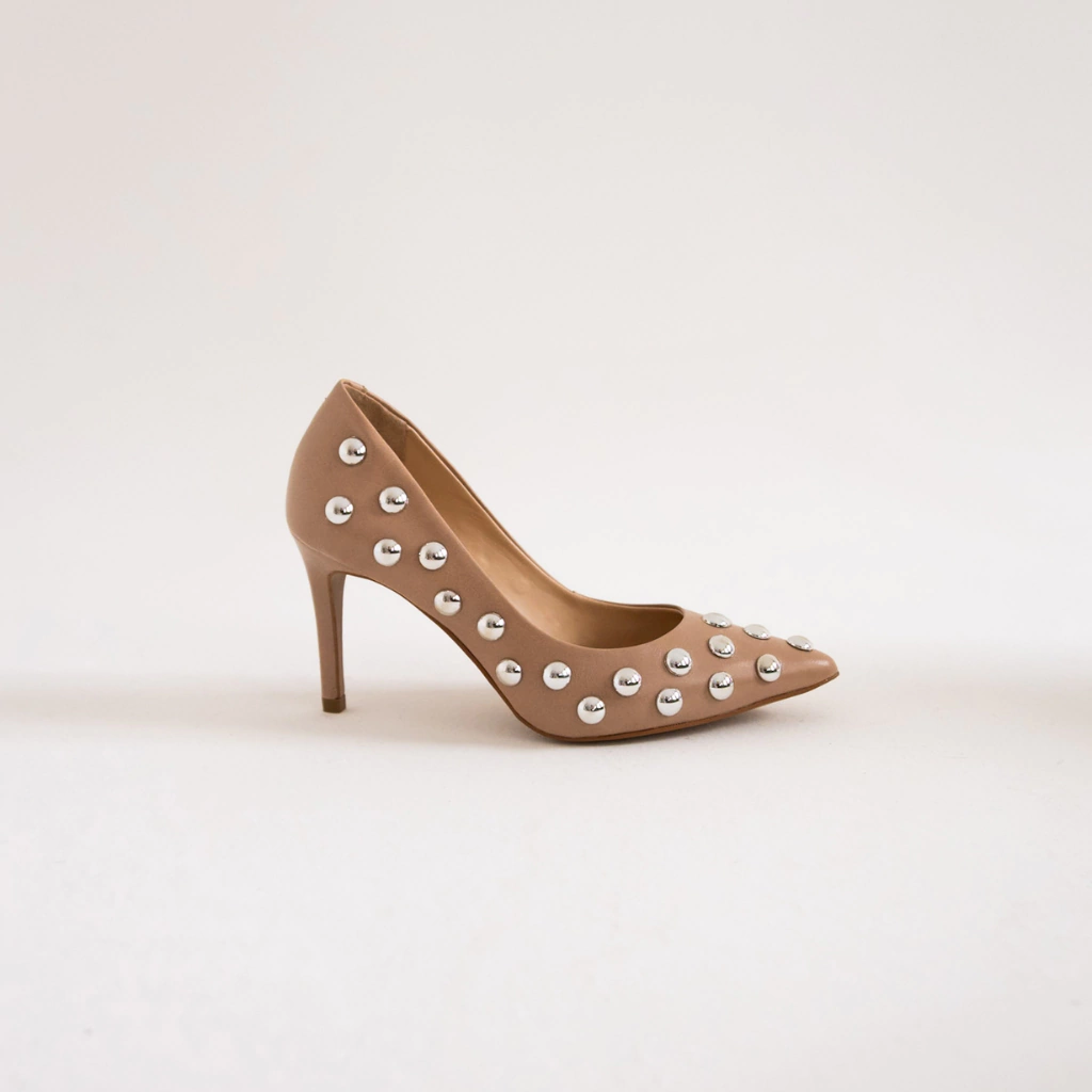 Scarpin Monaco é a fusão perfeita entre sofisticação e ousadia. Confeccionado em couro legítimo, o modelo se destaca pelas aplicações de esferas metálicas prateadas, que adicionam um toque moderno e marcante ao design clássico do scarpin. Seu salto de 8 cm proporciona a altura ideal para um visual elegante sem abrir mão do conforto.