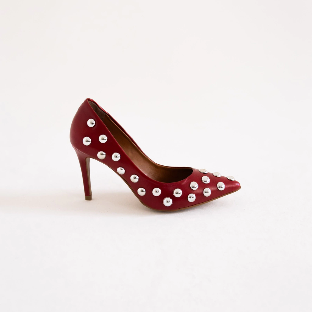 O Scarpin Monaco é a fusão perfeita entre sofisticação e ousadia. Confeccionado em couro legítimo, o modelo se destaca pelas aplicações de esferas metálicas prateadas, que adicionam um toque moderno e marcante ao design clássico do scarpin. Seu salto de 8 cm proporciona a altura ideal para um visual elegante sem abrir mão do conforto.