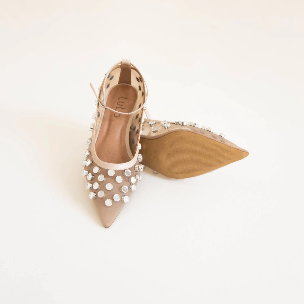 Seu cabedal em tela estruturada com acabamento em couro legítimo recebe a aplicação de tachas metálicas na cor prata, que adicionam brilho sutil e atitude à composição.
