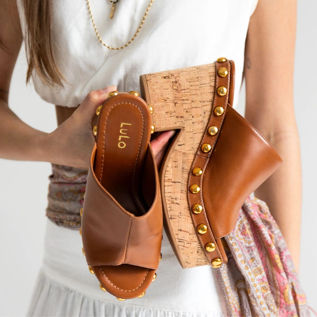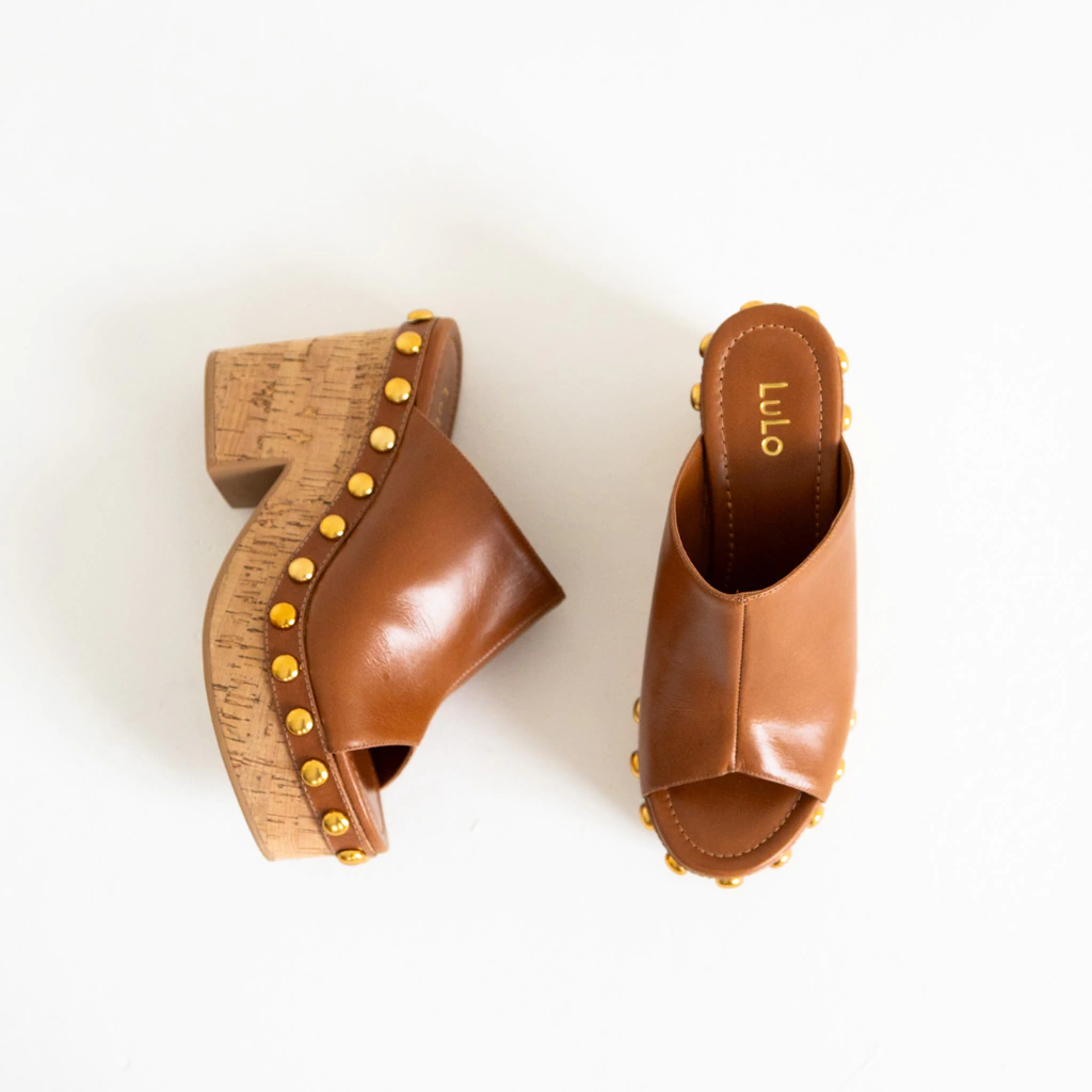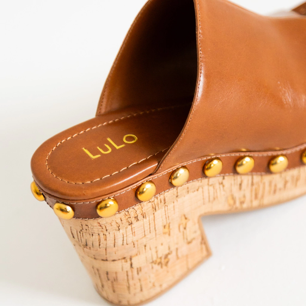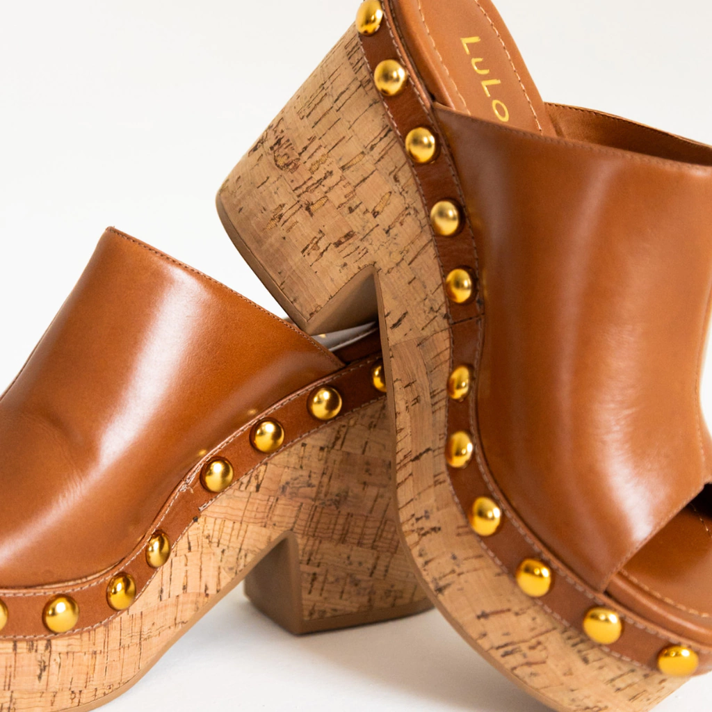 O Tamanco Nilo é a tradução perfeita de estilo e presença. Feito em couro legítimo na cor Conhaque, ele combina a sofisticação do acabamento liso com a ousadia das aplicações de tachas na cor ouro velho, que trazem brilho e modernidade na medida certa.